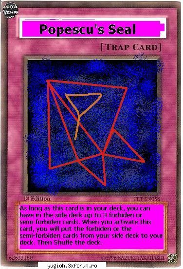 _______________________________________ Nu veti regreta, e singurul TCG romanesc. Warcards! Membru Ra yellow Am luat la testul lui reborned 7,15