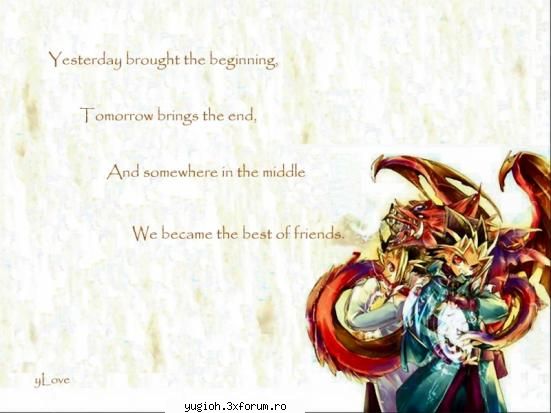 _______________________________________ "Dar ai putut sa fii la Ra...d c te-ai intors la Slifer?" "Viata nu ar fi fost la fel fara voi baieti!"
