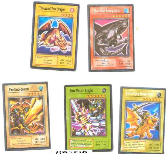 Aste sunt deplasate chiar si pentru niste carti contrafacute!Fire Swordman are 1800atk nu 11800.Asta ar insemna ca are atk mai mare decat Obelisk!